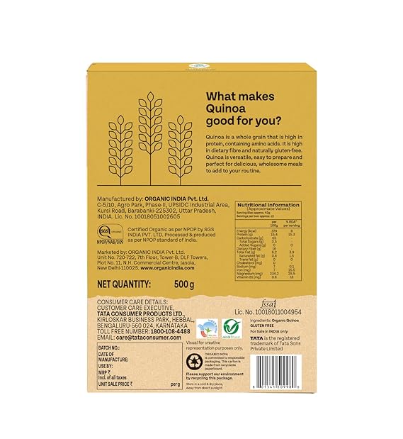 A TATA Product – Organic India Quinoa – 500g | Nutrient-Rich Whole Grain | Protein-Rich | Gluten-Free | Source of Iron & Magnesium